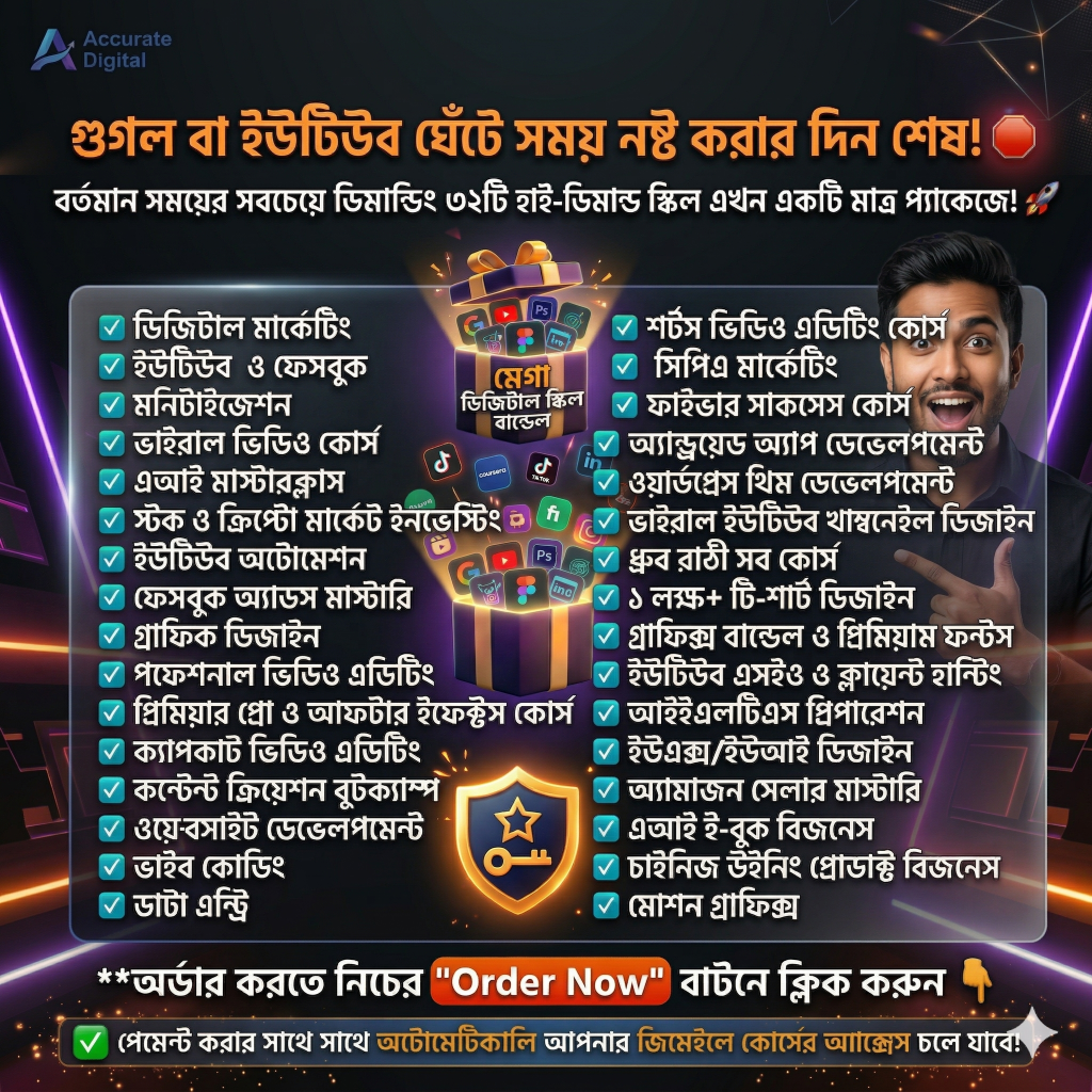 বর্তমান যুগে ক্যারিয়ার গড়তে দরকার সময়োপযোগী ও আধুনিক দক্ষতা। এই প্ল্যাটফর্মে আপনি নিজের সুবিধামতো সময় বেছে নিয়ে ঘরে বসে, অফিসে বা যেকোনো জায়গা থেকে আন্তর্জাতিক মানের কোর্স সম্পন্ন করতে পারবেন। ফলে সহজেই নতুন দক্ষতা অর্জন করে ক্যারিয়ার এগিয়ে নেওয়া কিংবা ফ্রিল্যান্সিং শুরু করা সম্ভব।