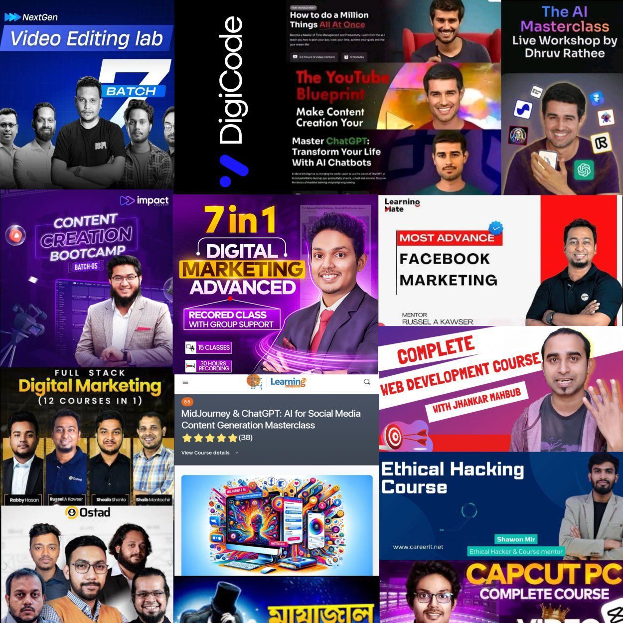 বলা হয়েছে 32 টারও বেশি, কিন্তু আপনি এখানে অসংখ্য হাই ডিমান্ডিং কোর্স পাবেন। যেগুলো আলাদা কিনতে গেলে ১ লক্ষ টাকায় ও কিনতে পারবেন না। আরো বেশি টাকা লাগবে। এই সকল কোর্স আপনি পাবেন শুধুমাত্র 200 টাকায়। এবং আমাদের এখানে ভবিষ্যতেও যত কোর্স এড হবে সবগুলো ফ্রিতে পাবেন। যদি আপনি অনলাইনে নিজের ক্যারিয়ার গড়তে চান ইনকাম করতে চান, অথবা পরে শিখতে চান তবুও আপনার জন্য এই বান্ডেলটা আপনার জন্য বেস্ট হবে। সারা জীবনের জন্য আপনি একটা গ্রুপের এক্সেস পাবেন। যেখানে নতুন নতুন কোর্স প্রতিনিয়ত আমরা অ্যাড করে থাকি। এগুলোর জন্য কোন আলাদা পেমেন্ট করা লাগবে না একবার পেমেন্ট এই সবকিছু আপনি পাবেন। তাই সুযোগটা না হারিয়ে, এখনই এই বান্ডেলটা কিনে রাখুন।
